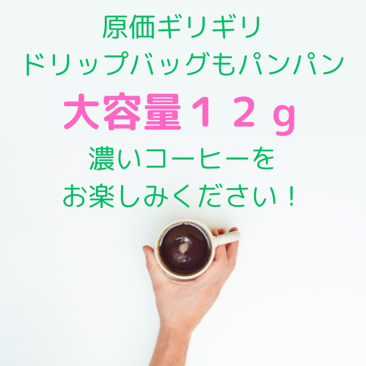 当店のドリップバッグコーヒーは大容量12gとなっています。